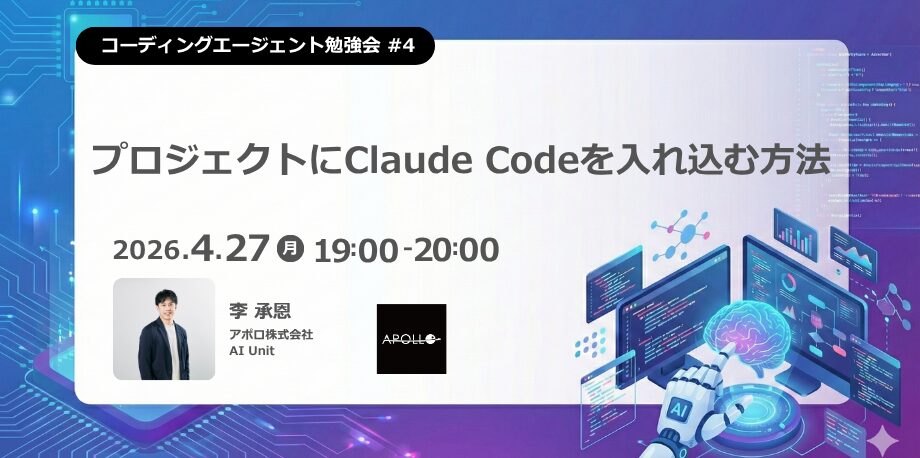 【4/27(月) 19:00~コーディングエージェント勉強会#4】プロジェクトにClaude Codeを取り入れる方法