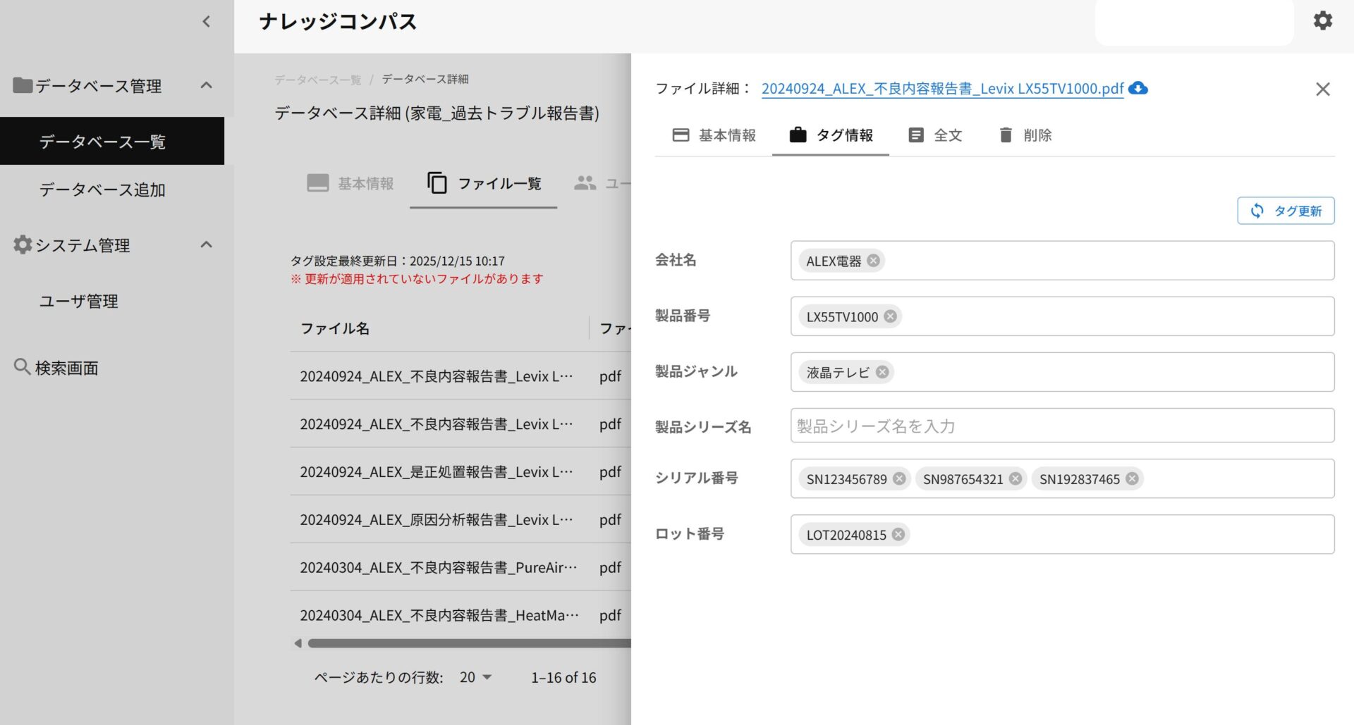 AIがドキュメントから「製品番号」や「シリアル番号」などの重要項目を自動で抽出・タグ付けし、これまで検索が困難だったデータに対しても、より正確な検索が可能になります。